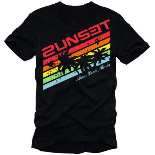 Coole Fun T-Shirts 2sunset T-shirt Homme Noir/Orange L