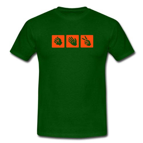 Spreadshirt, schnick schnack schnuck, Tee shirt classique Homme, vert bouteille, M?Rock-paper-scissors (also known as paper-scissors-rock, scissors-paper-stone, jan-ken-pon, rochambeau (sometimes spelled roshambo) and many derived terms), is a popular two-person hand game.. Le classique: ce tee shirt pour hommes à coupe droite est composé de coton filé pré-rétréci. La double couture en bas des manches, à la base et au col, garantit sa qualité et sa bonne finition. Confort garanti. Grammage: 190g/m². Composition 100% coton. Après confirmation de commande nous imprimons le produit individuellement pour toi. Ainsi, nous fabriquons des pièces uniques qui font vraiment plaisir à nos clients et soit dit en passant, nous préservons l''environnement.